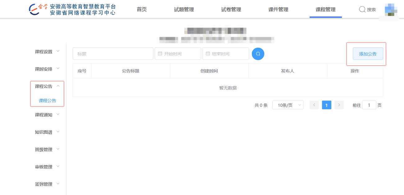 公告通知可以进入课程公告模块添加,点击“添加公告”即可新增一个课程 公告,输入公告标题及公告内容点击保存即可;公告内容包括但不限于课程内容 的更新通知,课程预警,提供课程参考资料下载渠道等,公告中支持上传图片及 课程附件,课程参考资料也可以附件的形式上传到课程公告中。 若后期公告需要修改或删除,进入公告列表,点击操作栏中的修改或删除按钮即可进行操作。